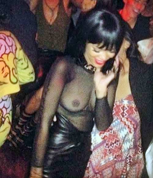 La jeune Rihanna seins nues au Balmain fashion show after party de paris avec une superbe robe transparence...